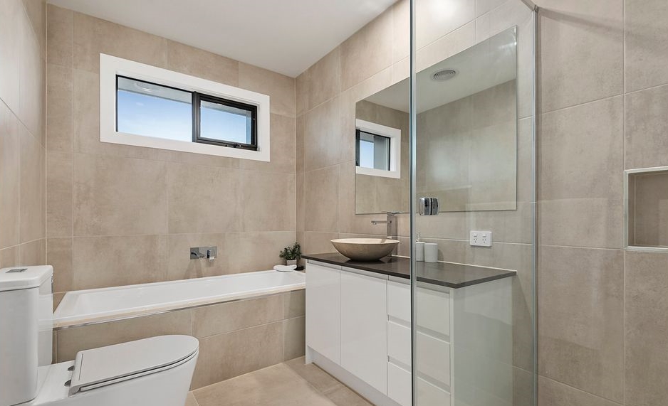 Bedrooms are calm and uncluttered, offering comfort through simplicity rather than ornamentation. Bathrooms follow a contemporary aesthetic with neutral stone finishes, clean joinery, and smart, space-efficient layouts.